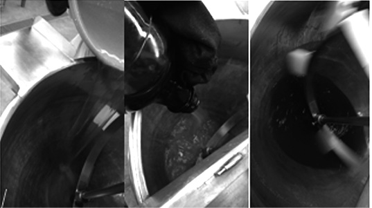 Posteriormente, se pasa a la marmita el reactor donde se llevará a cabo el proceso de transesterificación, la cual es un equipo construido en acero inoxidable, que tiene una capacidad de 20 galones y cuenta con una potencia de 1 caballo de fuerza (HP) para lograr 90 revoluciones por minuto (RPM). Este dispositivo se encuentra en los laboratorios de ingeniería de procesos, se puede calentar con una camisa de vapor y cuenta con agitación, actividad importante en la transesterificación. (Ver Figura 6).