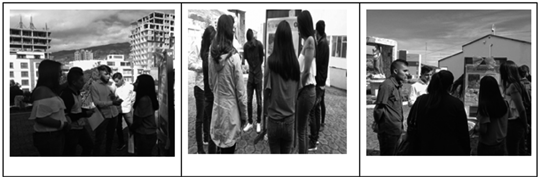 A medida que transcurría la mañana, se acercaron varias personas al lugar de exposición, con el fin de evaluar y escuchar la sustentación de cada uno de los grupos. Ellas, desde su percepción, hacían preguntas y evaluaban los diferentes parámetros. (Ver Figura 3).